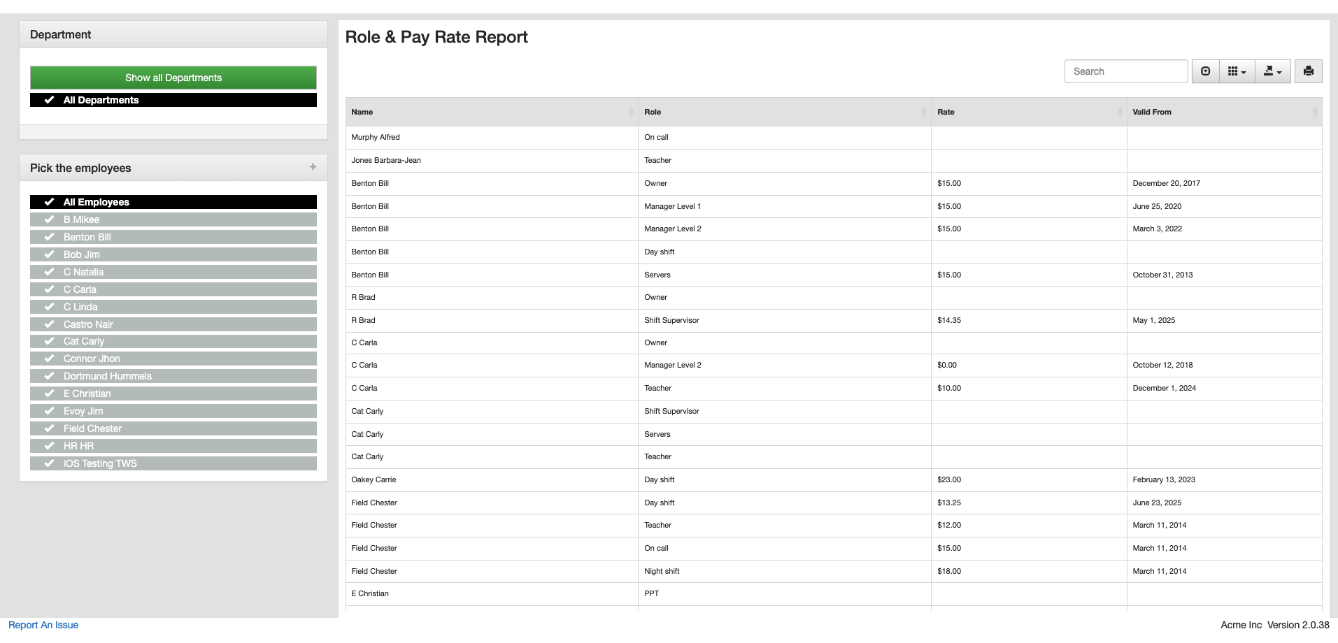 We’ve realeased a new report that shows all employees in their role and pay rate for that role.